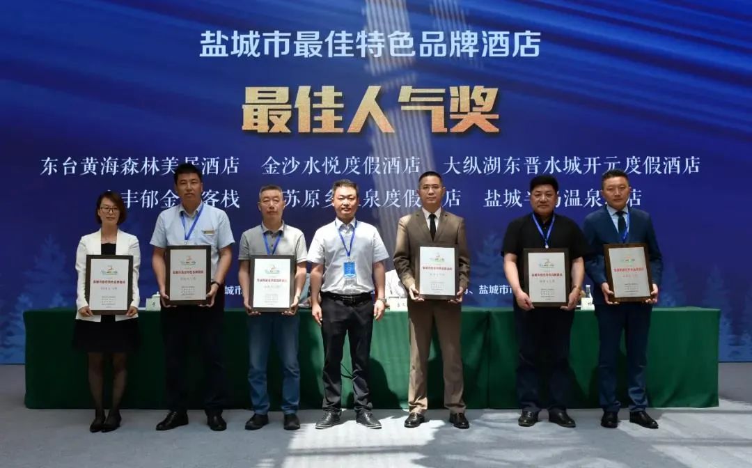 东台黄海森林美居酒店获评'最佳人气奖',国贸国际大酒店获评'最佳服务奖',黄海森林温泉酒店获评'最佳文创奖',苏臻喜事汇大酒店、西溪天仙缘小镇犁木街民宿获评'最佳主题奖',我市文化广电和旅游局获优秀组织奖。